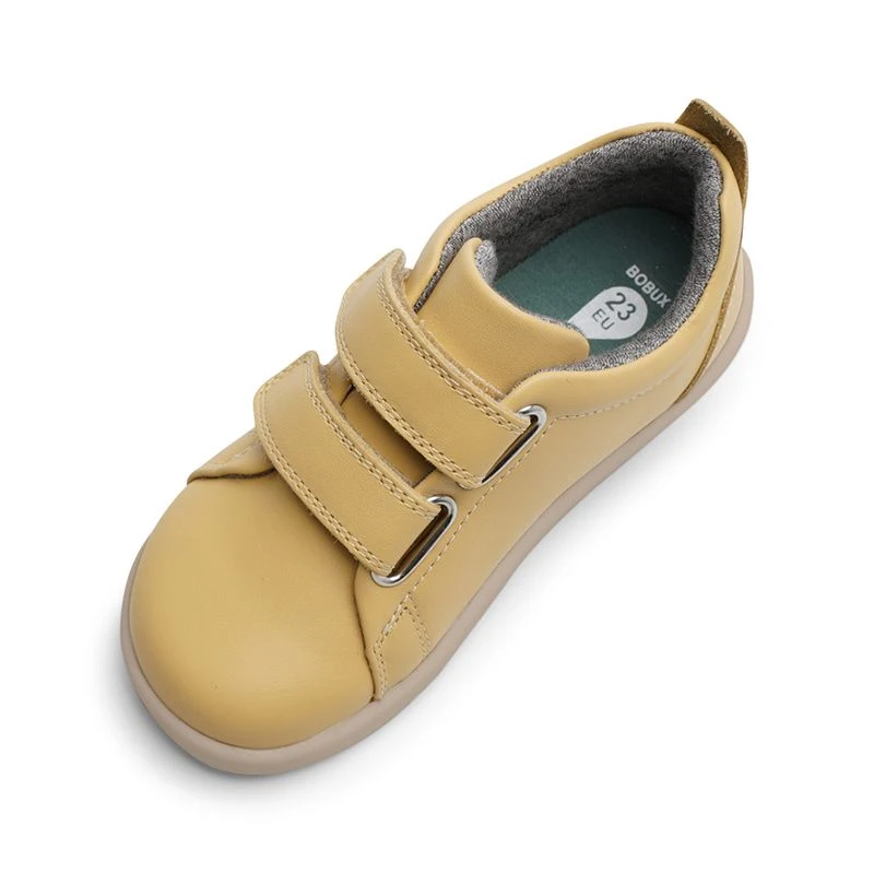 Grass Court is a lovely simple street styled sports shoe in a range of lovely bright colours and soft pastels. Made from a premium matt-finish leather with a cotton knit lining with double velcro straps give a great adjustment. This shoe is on the original Bobux sole unit which is a medium width with nice anatomical toe box.