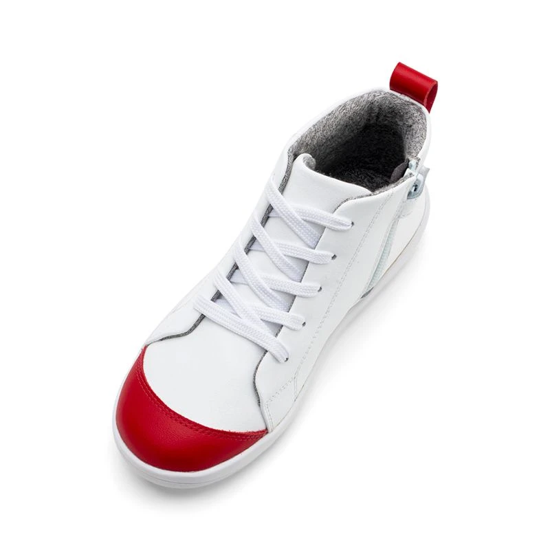 | Features | On the new Kid+ sole unit which is a 6mm thick zero drop rubber sole unit. Coated matt-finish leather upper. Cotton-knit lining. Adjustable laces for secure fit but with side zip for easy on and off once laces are set. Padded heel collar for comfort. Synthetic rubber (TPR) sole unit. |