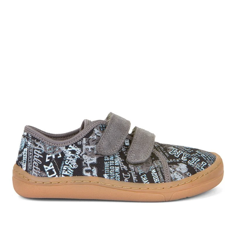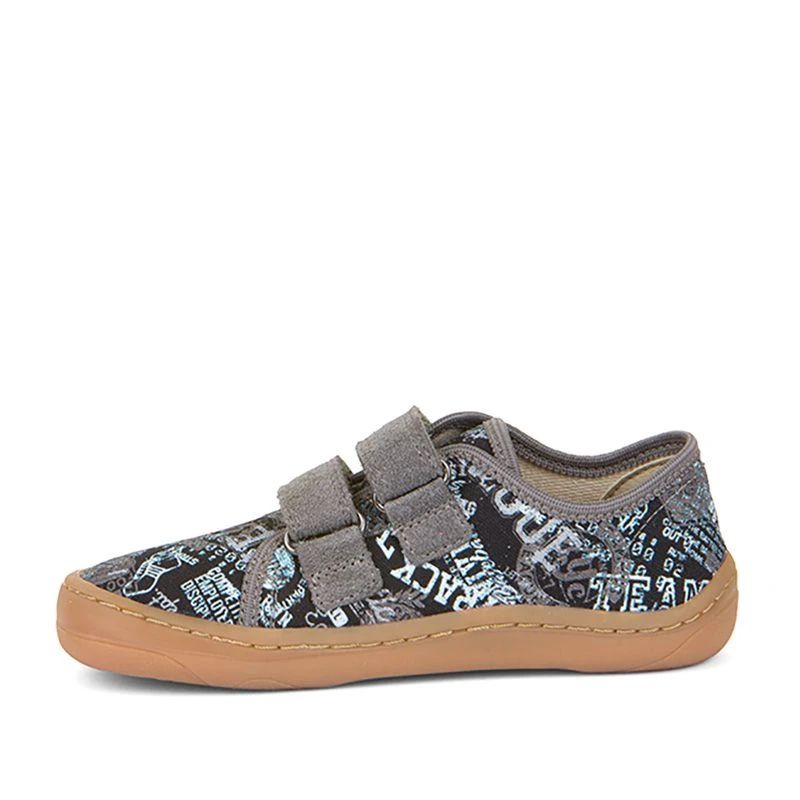 These lightweight canvas shoes are from the Froddo Barefoot range and on their lovely, original barefoot sole. A great sole unit, zero-drop, thin and flexible with a nice wide toe box. The canvas shoes are made with a textile upper and leather velcro tabs. The lining is a nice soft fabric with a microfibre internal heel for durability. They have a removable antibacterial insole.