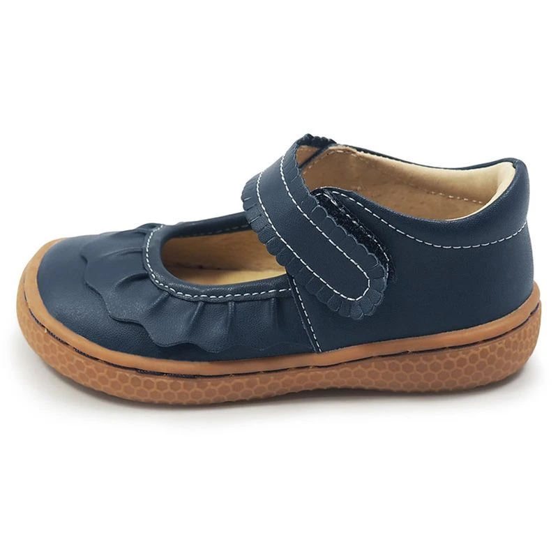 Ruche is just the ticket for your perfect, simple everyday shoe. This shoe is pretty enough to make her smile and simple and stylish enough to be worn on any occasion. With just a few kisses of detail – a scalloped strap and scalloped applique; ruffles over the front and heel.