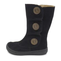 Tiempo is Spanish for time and features leather clock buttons marching up one side. A lovely mid calf style boot in lovely soft suede. A zipper on the inside gets the boots on and off quickly and puts a vibrant zing in her step this autumn.