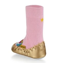 A high quality moccasin made in Sweden from natural ecotex certified materials. The durable leather moccasin sole provides grip like an indoor shoe while allowing children’s feet to move freely and muscles to develop. Double elastic at the ankle prevents the moccasin from falling off which makes them ideal for nursery or wearing at home.