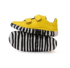 A practical and simple barefoot shoe from Australian brand, PaperKrane in a fun and unique colourway. These shoes have a zero drop 4mm thin sole made of flexible natural rubber. Lightweight and medium width they are made from super soft leather. They include a double velcro fastener for a snug and comfortable fit with a durable stitched sole to increase lifetime.