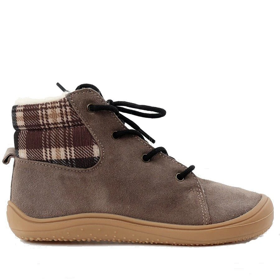 The Beetle boots from Tikki is a lovely cosy winter boot. perfect all round winter option. They are on the new ‘Oxygen’ natural rubber sole unit from Tikki. This is a wide fitting 3mm thin zero drop sole designed for maximum flexibility, optimal toe space and natural foot shape. The boots have a water repellent suede uper with a cosy natural wool lining and a 2mm felted wool insole for extra warmth. They have a lace up fastener for a super adjustable fit. Please note that sizes 19-29 have a protective toe cap whereas sizes 30-39 have the streamlined sole unit, both are pictured.